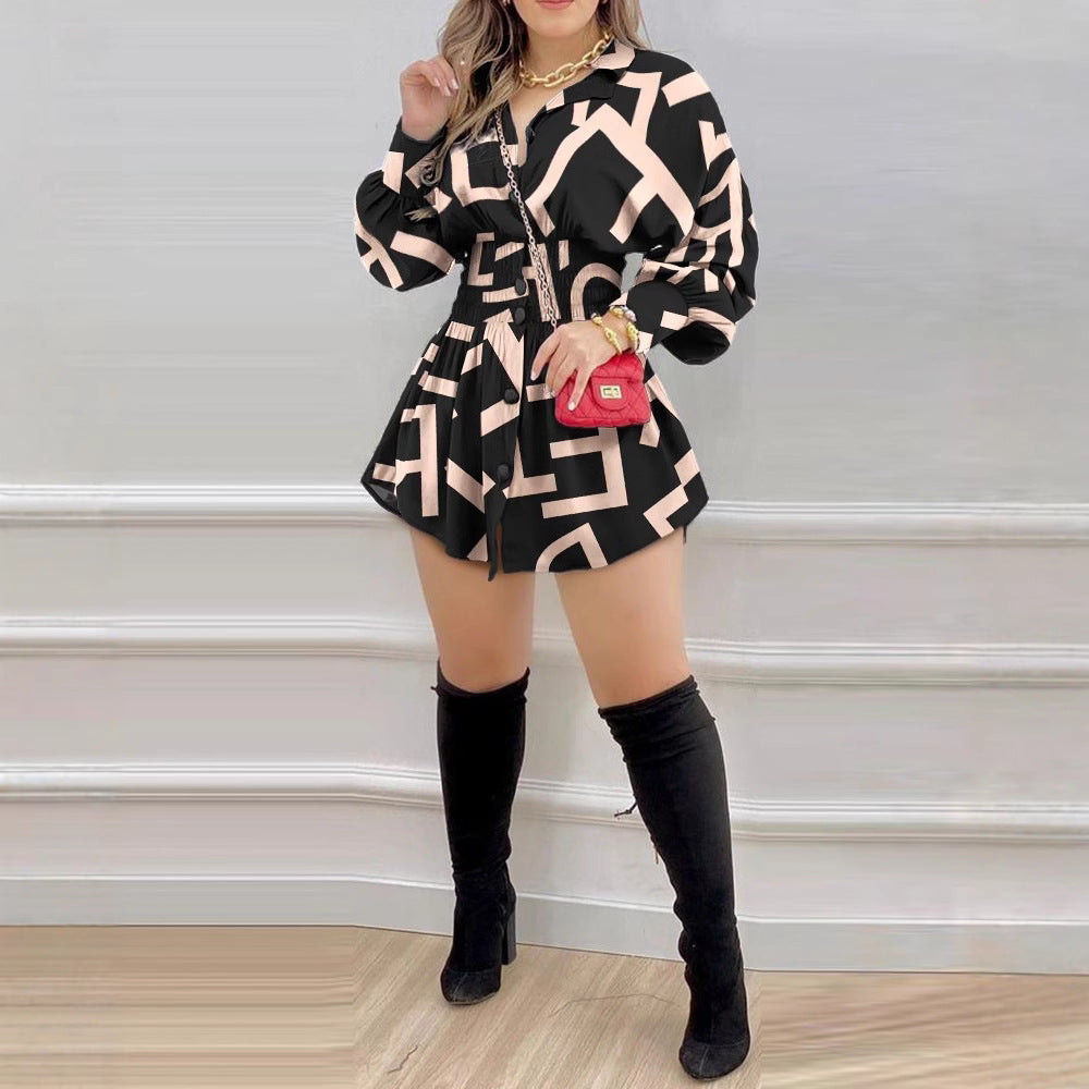 Damen trendiges Hemd-Kleid mit grafischem Design Aliams
