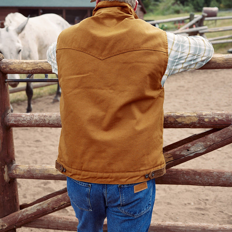 Die Weste ist leicht und dennoch warm gefüttert, ideal für Übergangszeiten oder als modisches Layering-Element. Die praktischen Taschen vorne bieten ausreichend Platz für persönliche Gegenstände und sind durch einen eleganten Druckknopf gesichert.