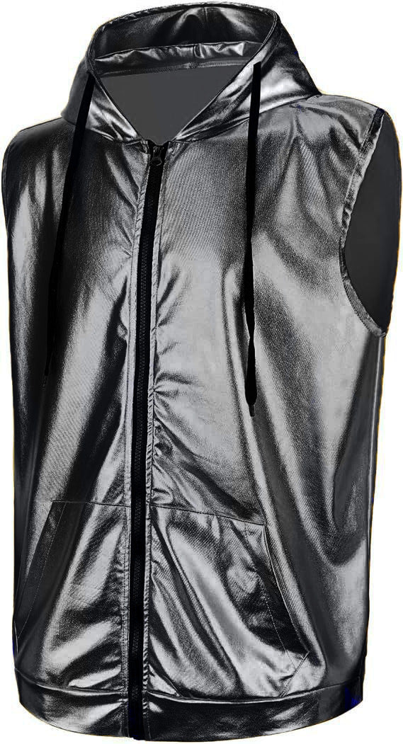 Herren angesagte Kapuzenweste mit metallischem Glanz und praktischen Taschen Aliams