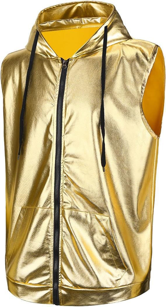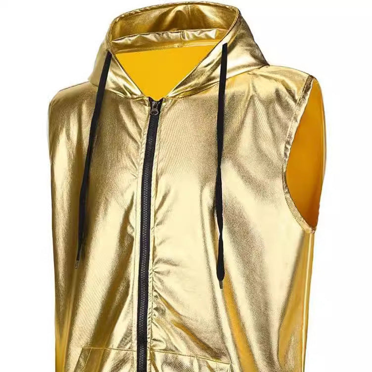 • Modernes Design: Die Weste ist in einem auffälligen metallischen Glanz gehalten, der Ihnen einen einzigartigen Look verleiht und ideal für Partys oder besondere Anlässe ist.
