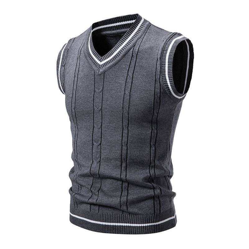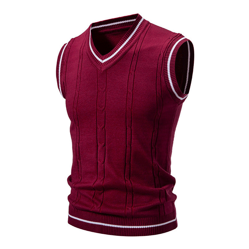 Herren ärmellose Strickweste mit V-Ausschnitt und strukturiertem Muster Aliams