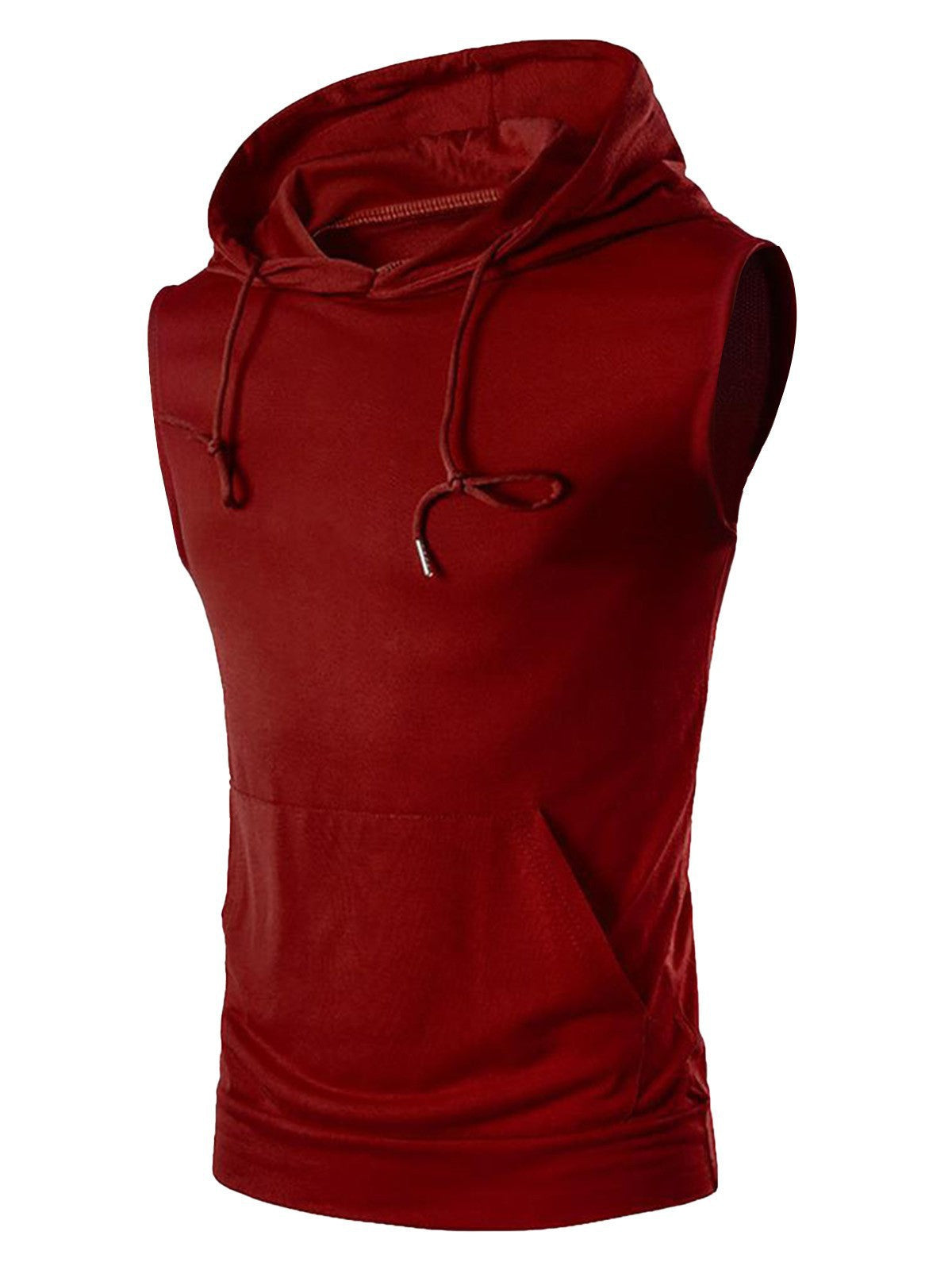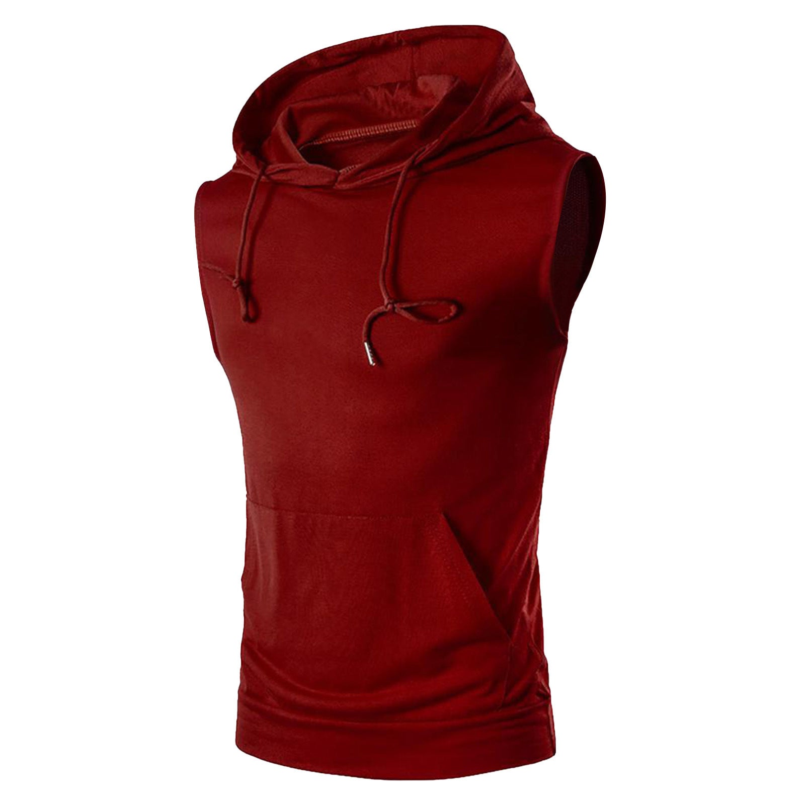 Herren ärmelloses Kapuzenshirt mit geräumiger Kängurutasche und atmungsaktiven Materialien Aliams
