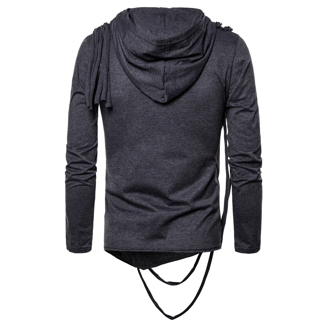 Seien Sie der Mittelpunkt jeder Veranstaltung mit diesem trendigen Shirt, das Stil und Komfort perfekt kombiniert. Bestellen Sie noch heute Ihr Herren asymmetrisches Kapuzenshirt mit dekorativen Details von Aliams!