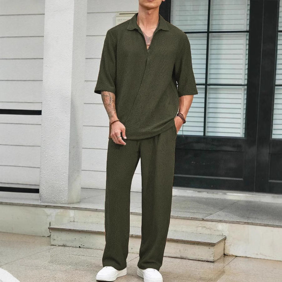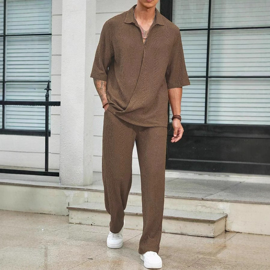Herren Bequemer Relaxed Fit Freizeitanzug mit strukturiertem Oberteil und weit geschnittenen Hosen Aliams