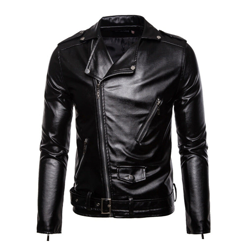 Herren Biker-Lederjacke mit asymmetrischem Reißverschluss und robusten Nähte Aliams