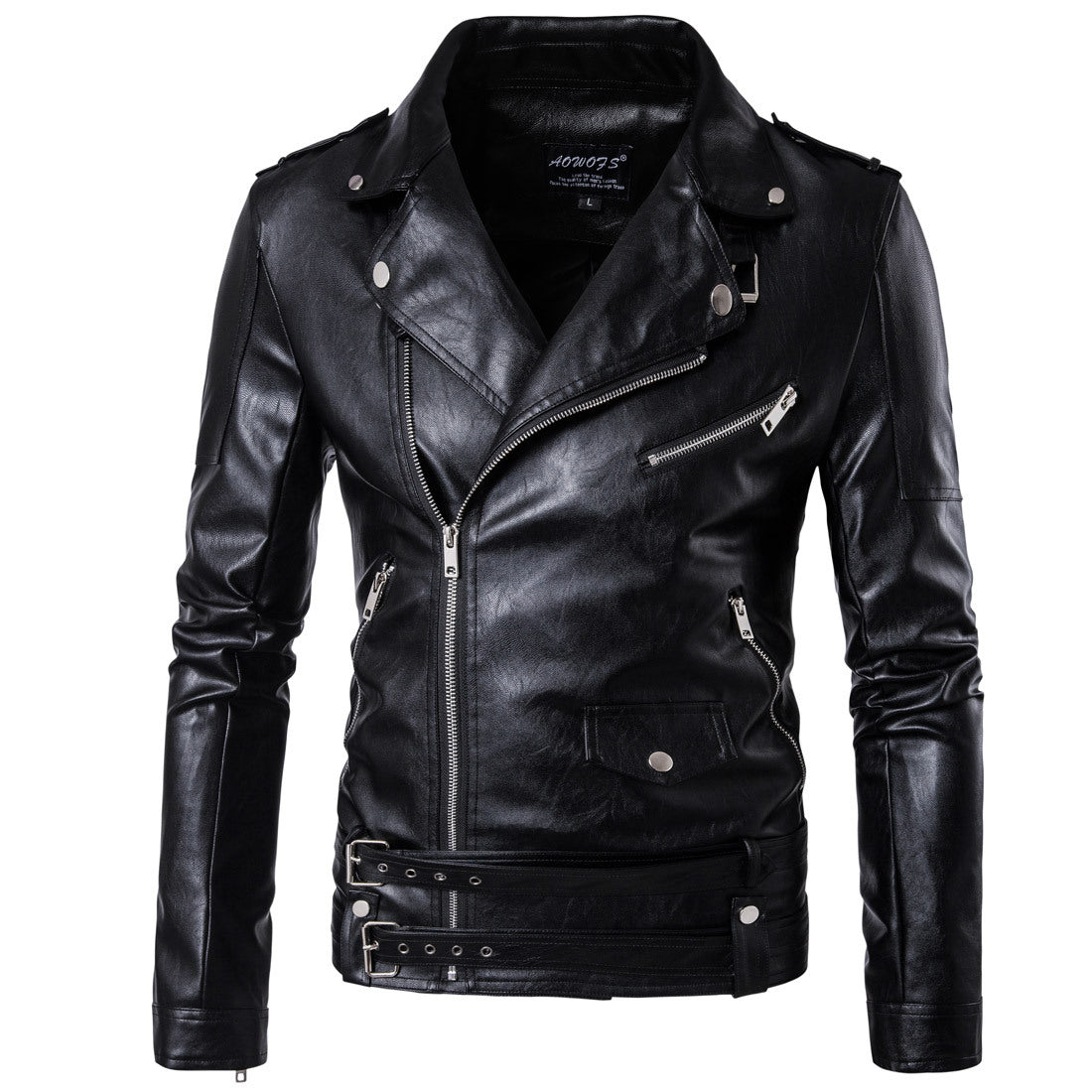 Herren Bikerjacke aus hochwertigem Leder mit asymmetrischem Reißverschluss und dekorativen Schnallen Aliams