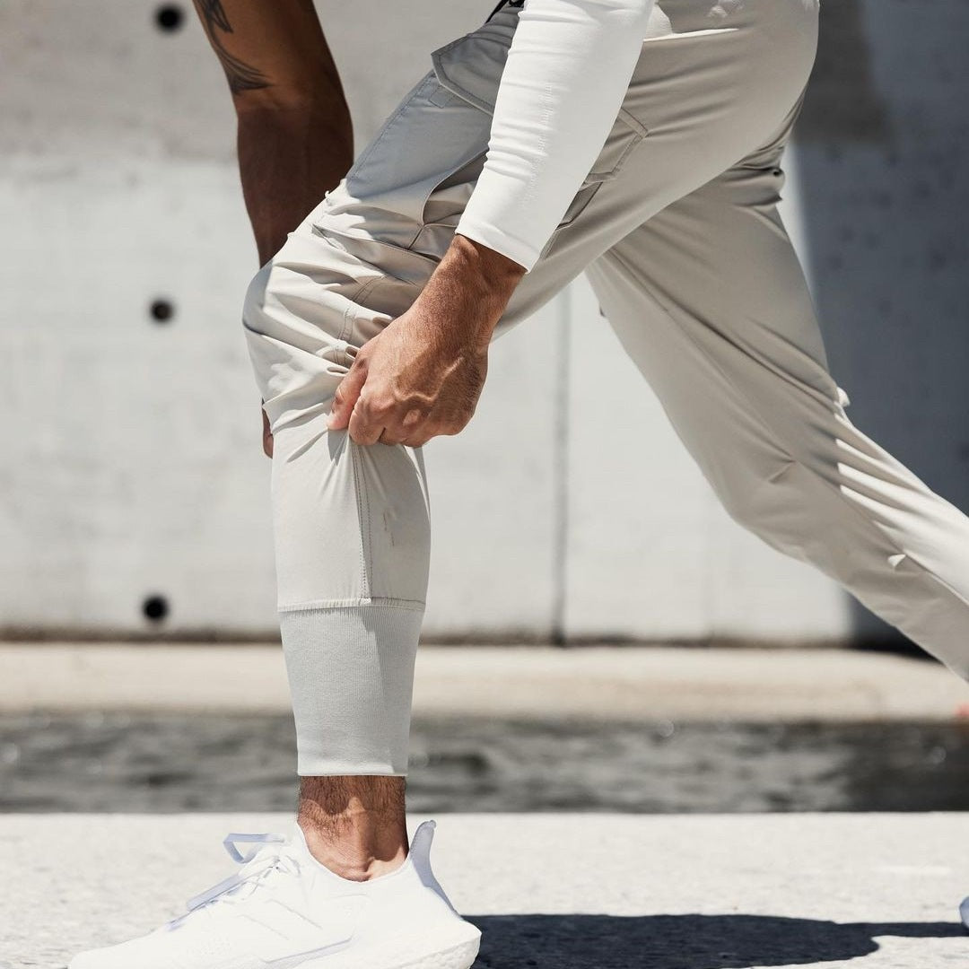 • Funktionalität: Die seitlichen Taschen bieten genügend Platz für Ihre persönlichen Gegenstände, während der schmale Beinabschluss für einen sportlichen Look sorgt.