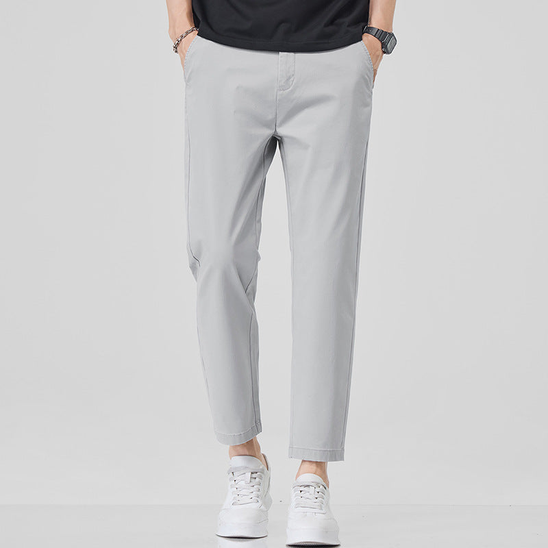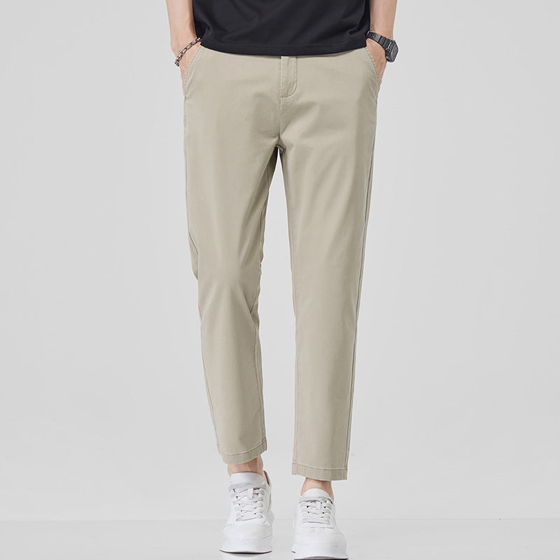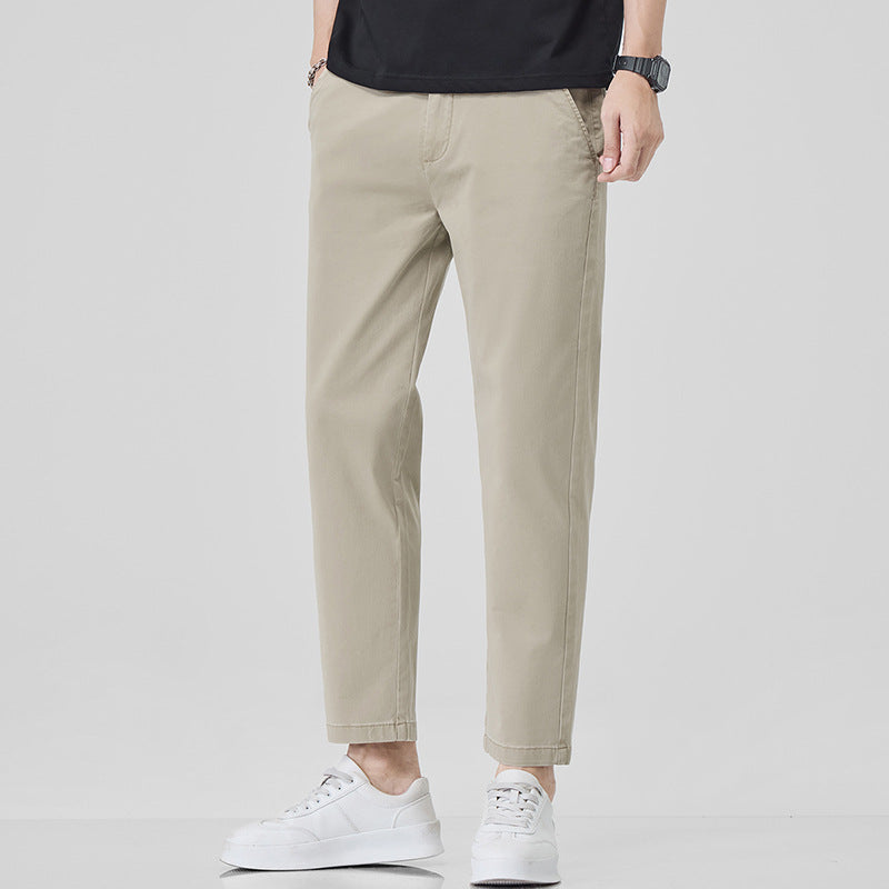 Verleihen Sie Ihrer Garderobe mit dieser zeitlosen Herren Chinohose von Aliams einen Hauch von Eleganz und Komfort.