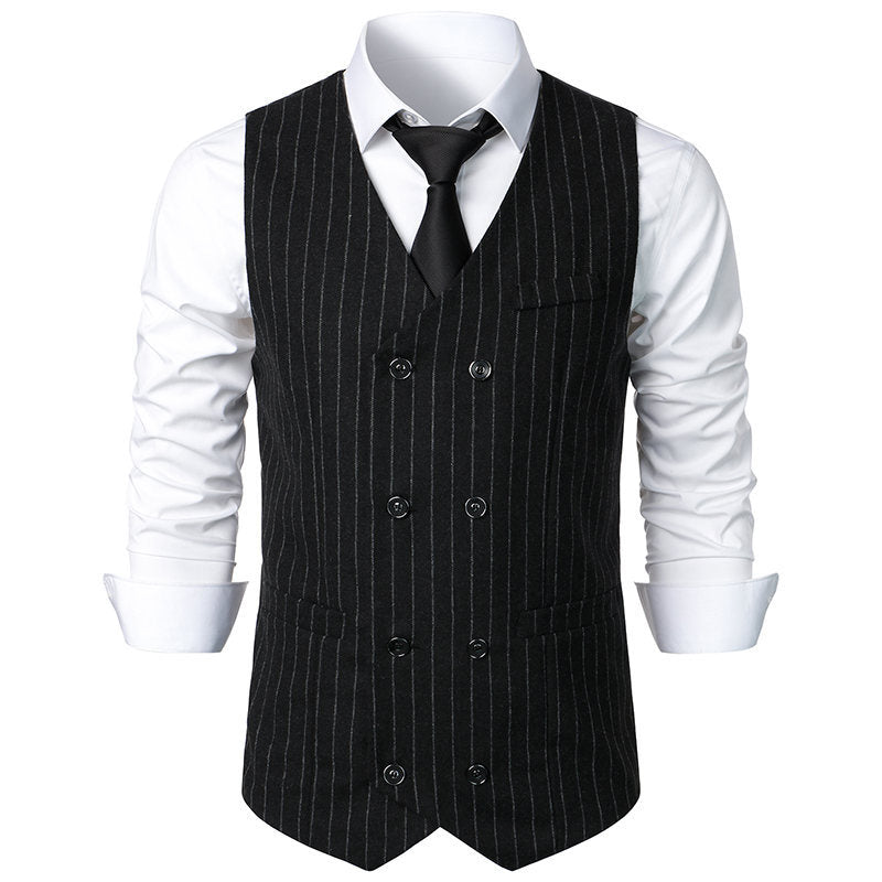 Herren elegante Anzugweste mit feinem Streifenmuster und doppelter Knopfleiste Aliams