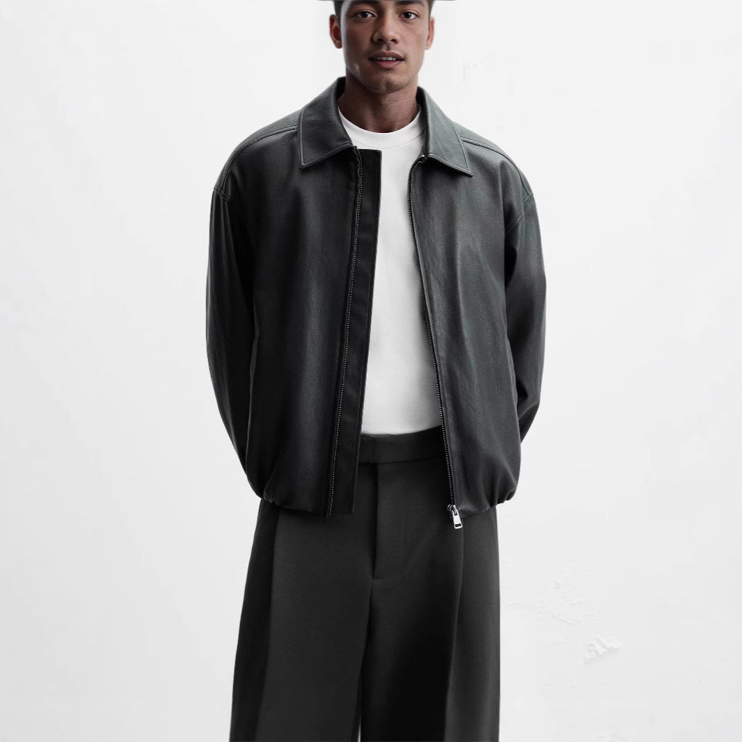 Herren elegante Kunstlederjacke mit modischem Stehkragen und seitlichen Eingrifftaschen Hedi-Mode