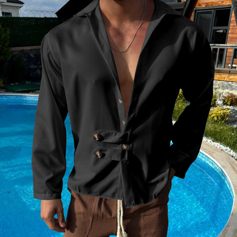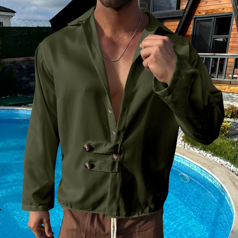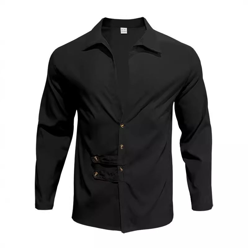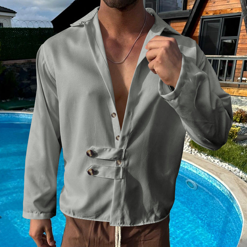 Entdecken Sie die Herren Elegante Langarmbluse mit einzigartiger Knopfleiste und schickem Stehkragen von Aliams – die perfekte Wahl für jeden modernen Mann, der Stil und Komfort sucht.