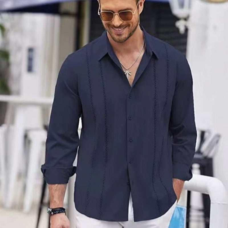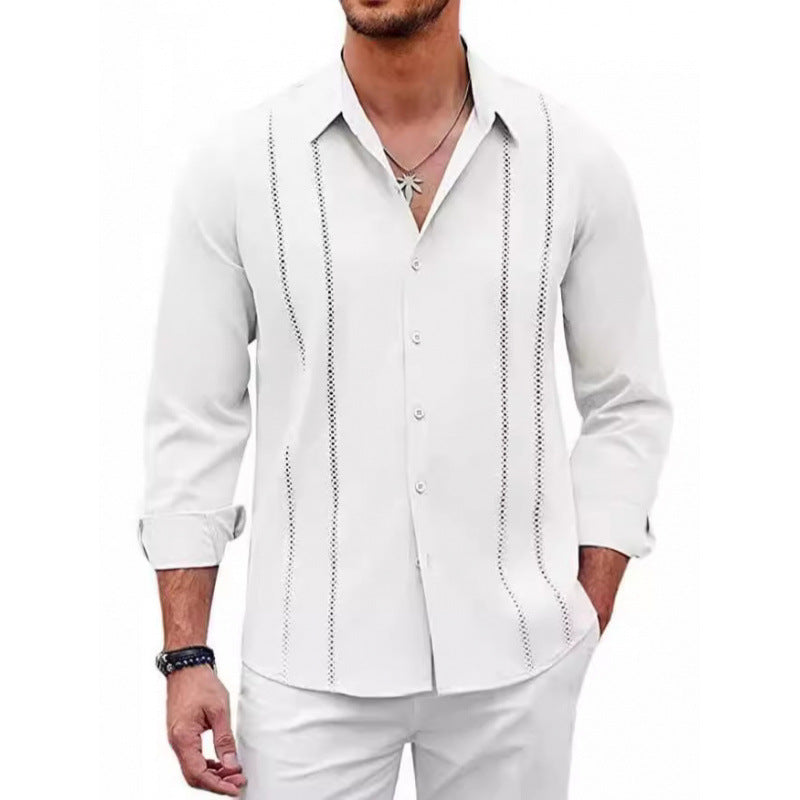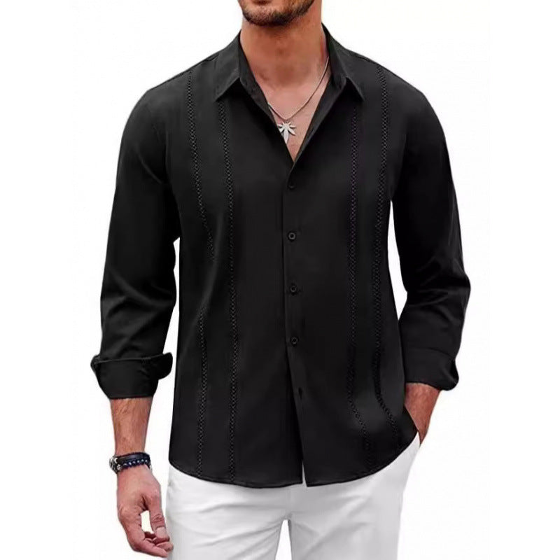 Herren Elegante Langarmbluse mit feinen Stickdetails Aliams