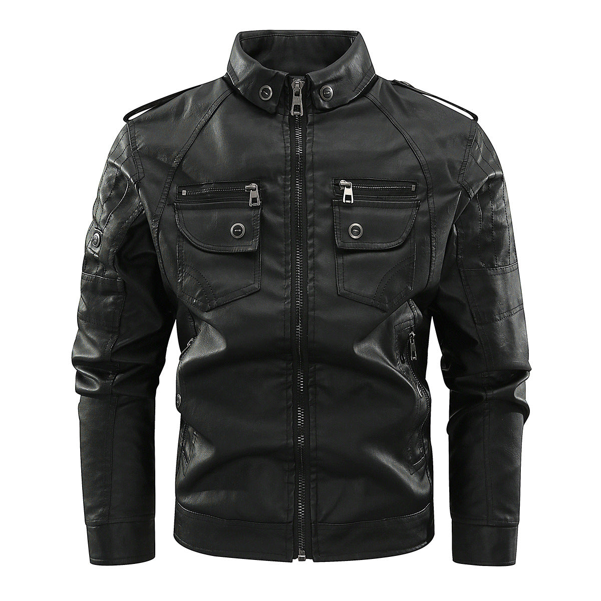 Entdecken Sie die Herren elegante Lederjacke mit praktischen Taschen und Reißverschlussdetails von Aliams. Dieses stilvolle Kleidungsstück vereint zeitlosen Chic mit Funktionalität und ist der perfekte Begleiter für jede Gelegenheit.