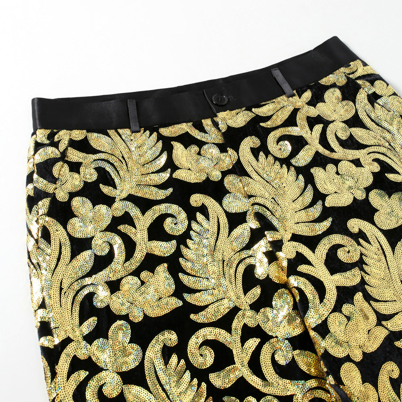 Die Herren elegante Pailletten-Anzughose mit floralen Mustern von Aliams ist das perfekte Kleidungsstück für festliche Anlässe und Partys. Diese Hose kombiniert Stil und Komfort und sorgt dafür, dass Sie bei jedem Event im Mittelpunkt stehen.