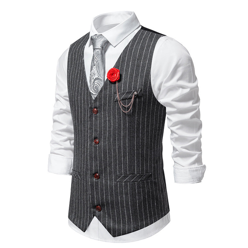 Entdecken Sie die stilvolle Herren elegante Weste mit schmalem Hahnentrittmuster und asymmetrischen Akzenten. Diese Weste kombiniert klassischen Charme mit modernen Details und sorgt somit für einen eleganten Look bei besonderen Anlässen.