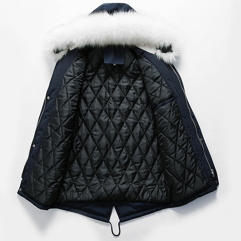 Entdecken Sie die stilvolle Herren elegante Winterjacke mit modischer Kapuze und Kunstfellbesatz von Aliams, die Ihnen perfekten Schutz und einen angesagten Look bietet.