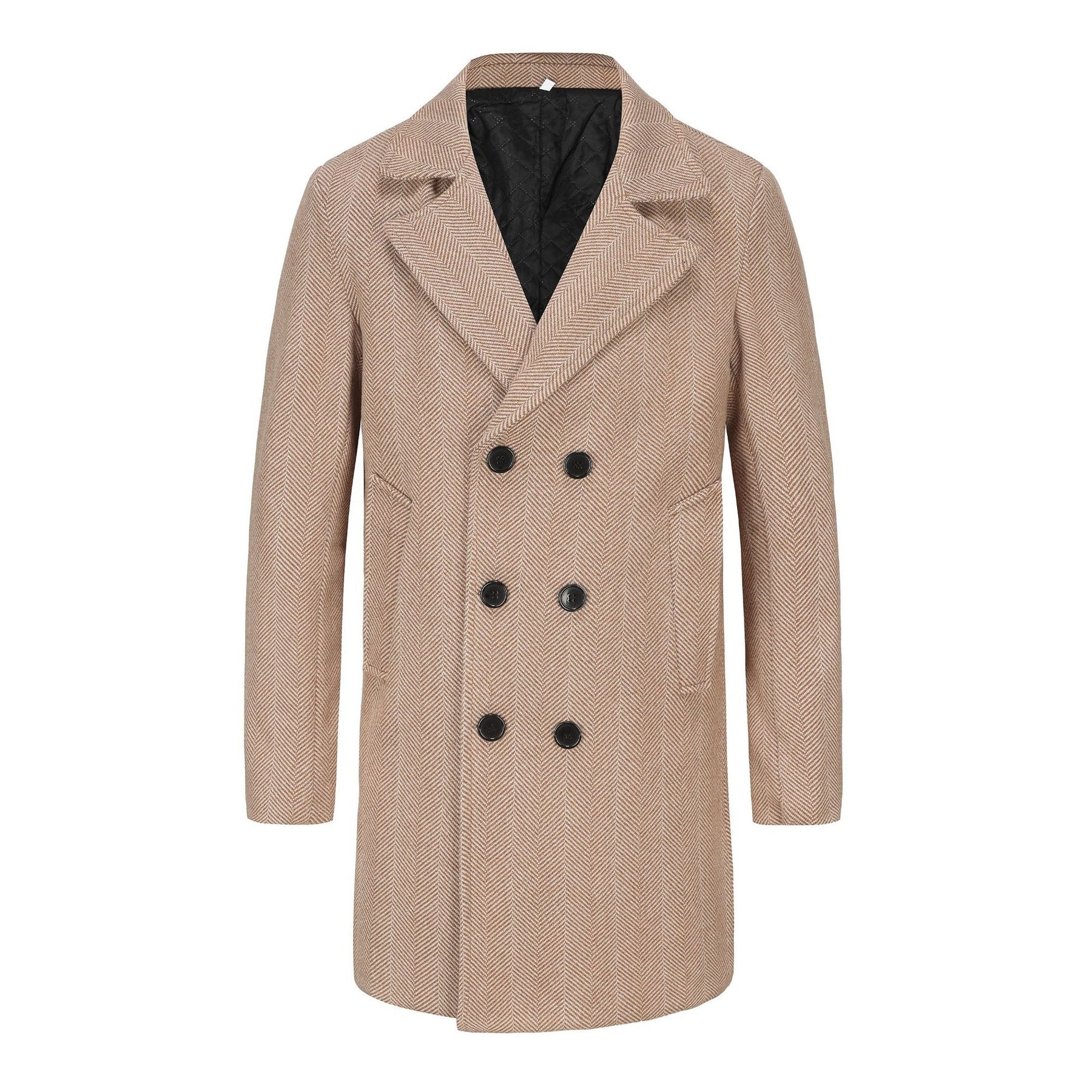 Herren eleganter Doppelreihiger Mantel im Fischgrätmuster Aliams