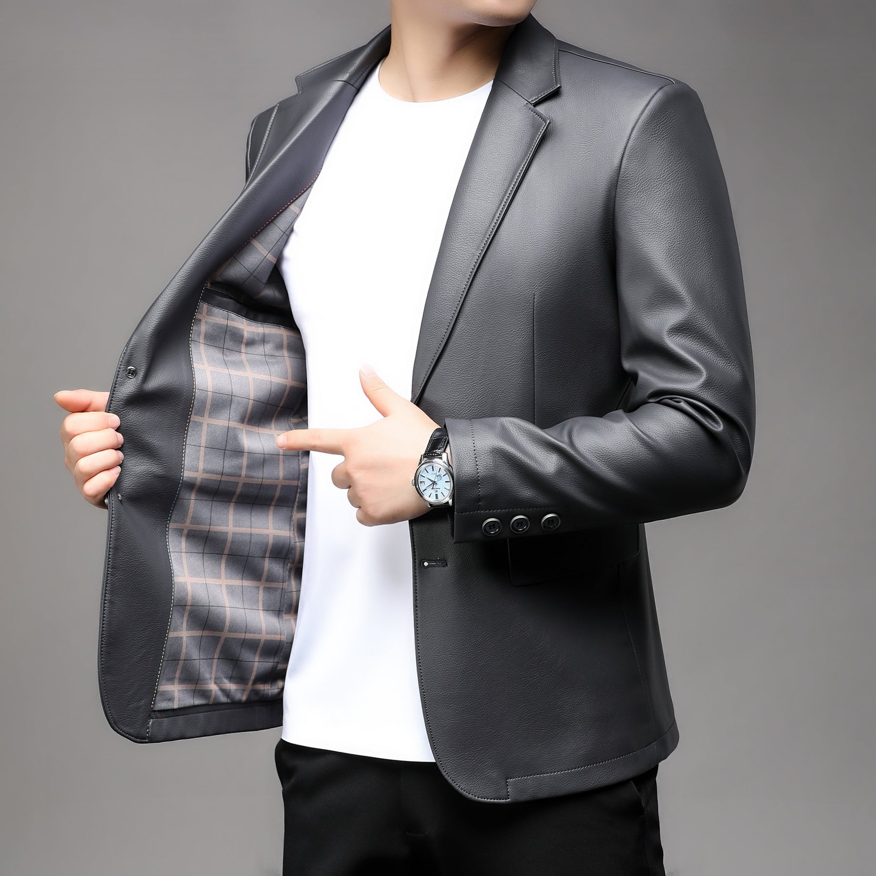 Herren eleganter Kunstleder-Blazer mit klassischem Schnitt Aliams