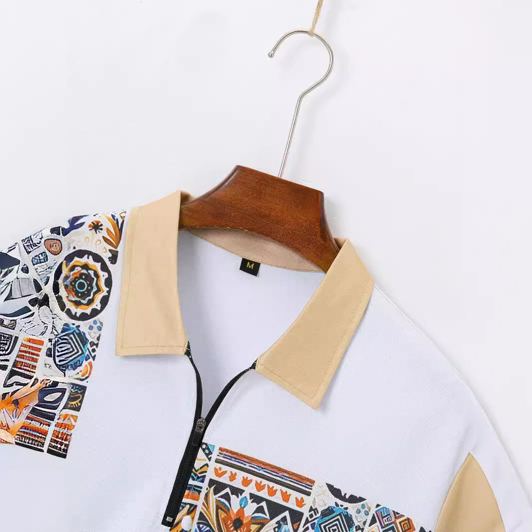 Entdecken Sie das Herren elegante Kurzarm-Set mit künstlerischen Mustern und praktischen Taschen von Aliams – perfekt für modebewusste Männer, die sowohl Stil als auch Komfort schätzen.