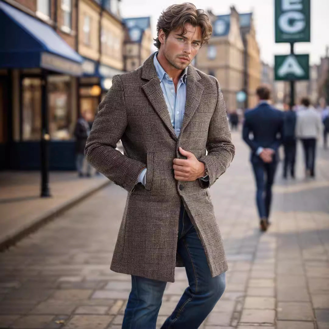 Herren eleganter Langmantel im Karomuster mit abnehmbaren Innenteil Aliams