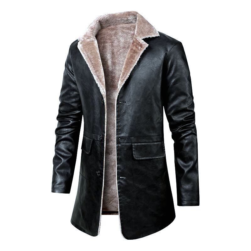 Herren eleganter Lederblazer mit warmem Fleece-Futter Aliams