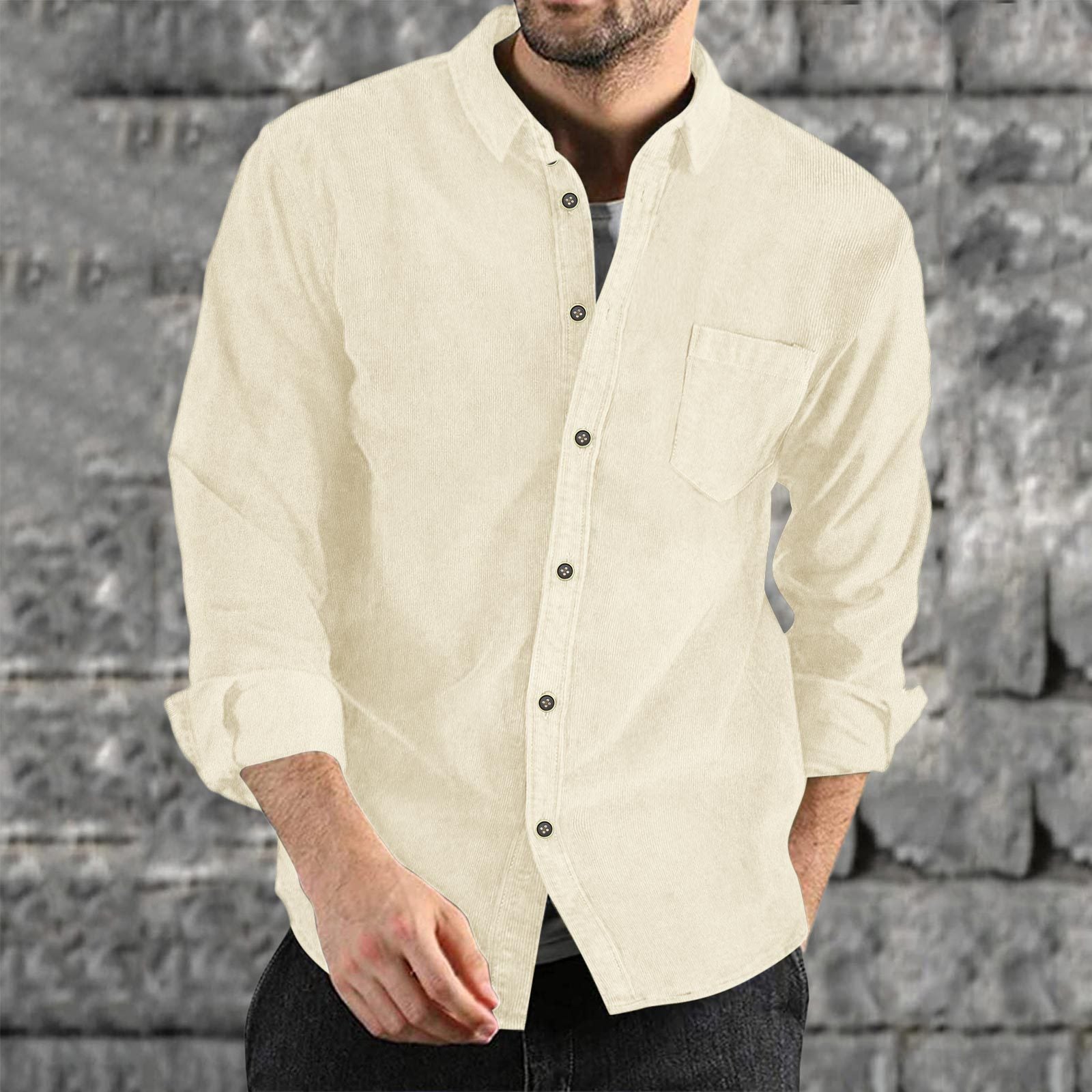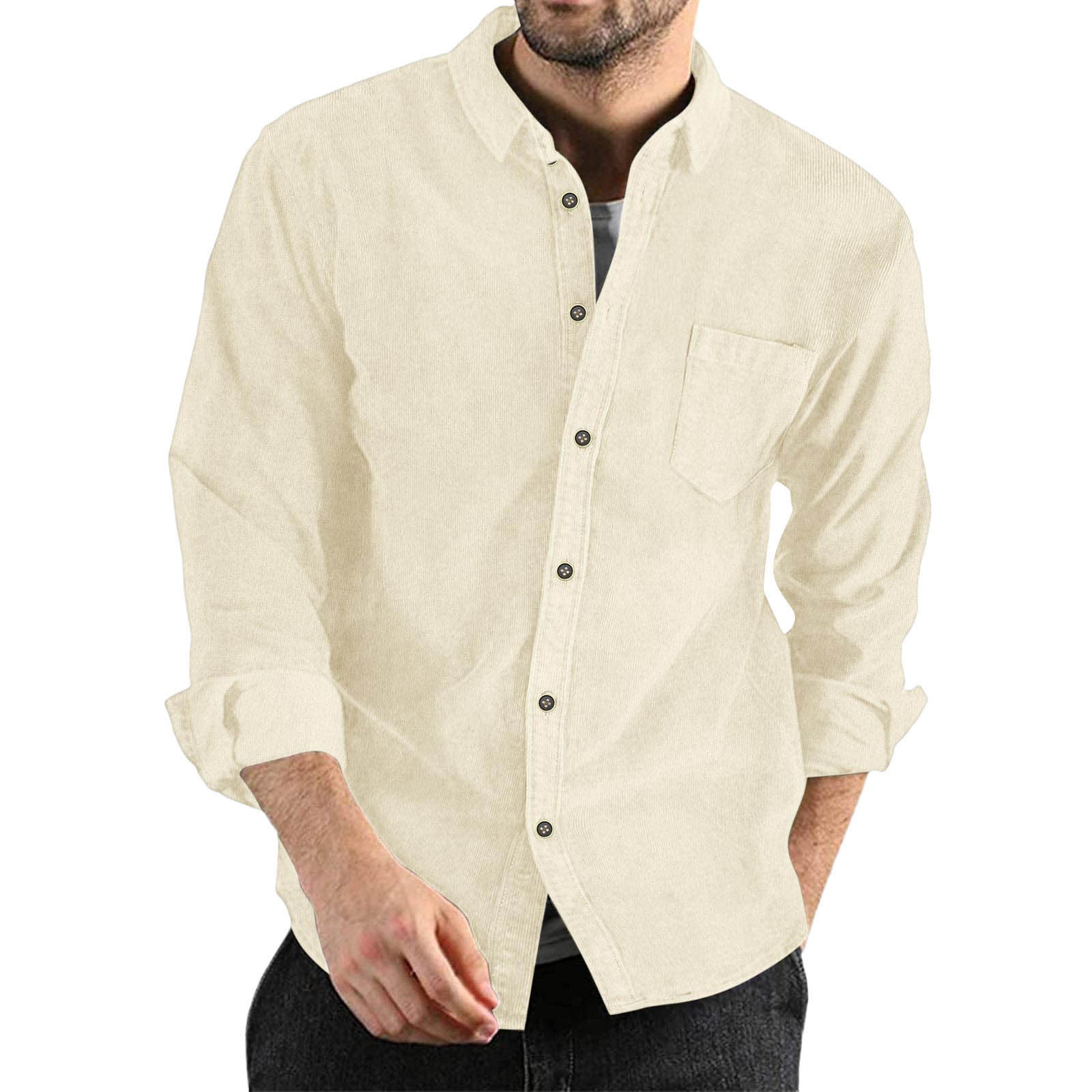 Herren elegantes Kordhemd mit praktischer Brusttasche Aliams
