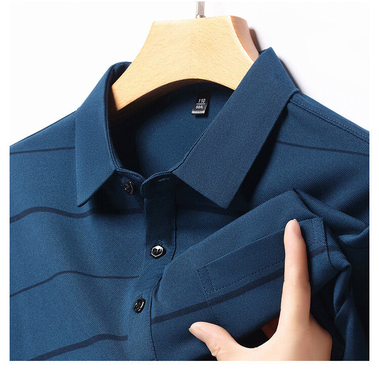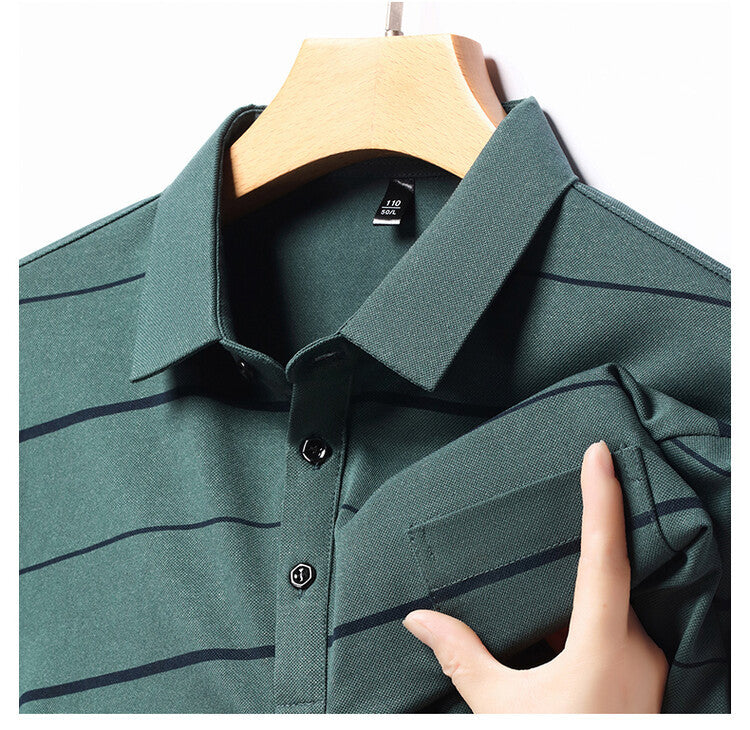 Herren elegantes Kurzarm-Poloshirt mit modischem Streifenmuster Aliams
