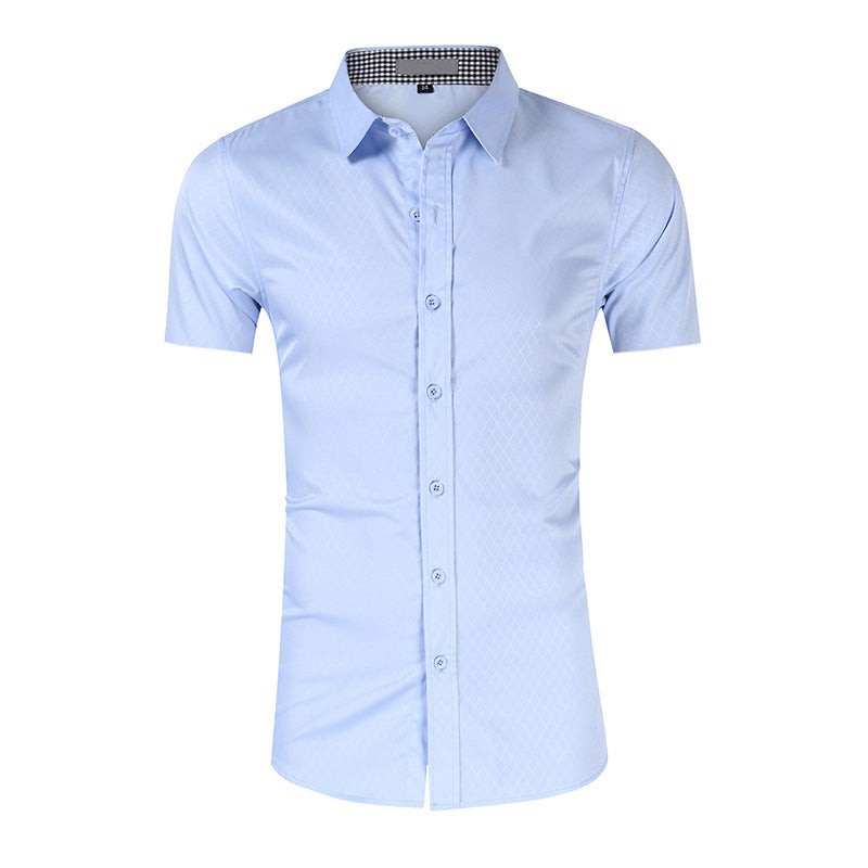 Entdecken Sie unser Herren elegantes kurzärmliges Hemd mit feiner Struktur, das ideal für den stilbewussten Mann ist, der sowohl in Freizeit- als auch in Geschäftsumgebungen gut aussehen möchte. Dieses Hemd kombiniert Komfort mit hervorragendem Design und ist ein echter Hingucker.