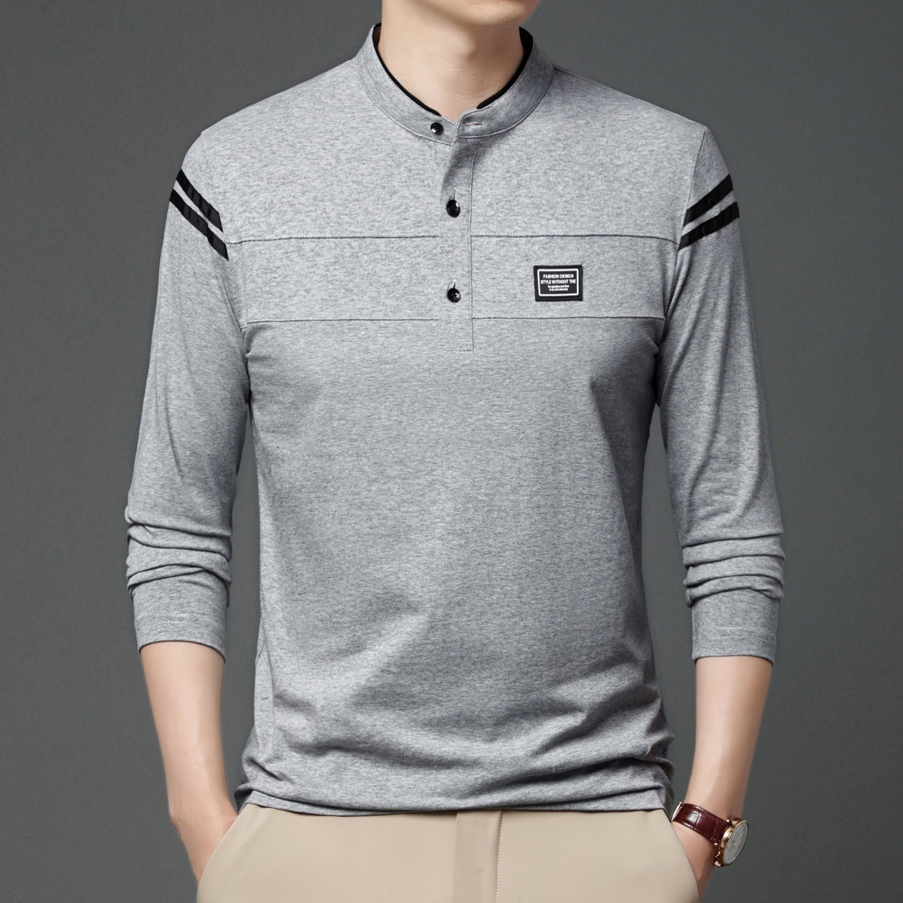 • Design: Modernes Stehkragen-Design mit eleganten Knopfdetails und modischen Streifen auf den Ärmeln.