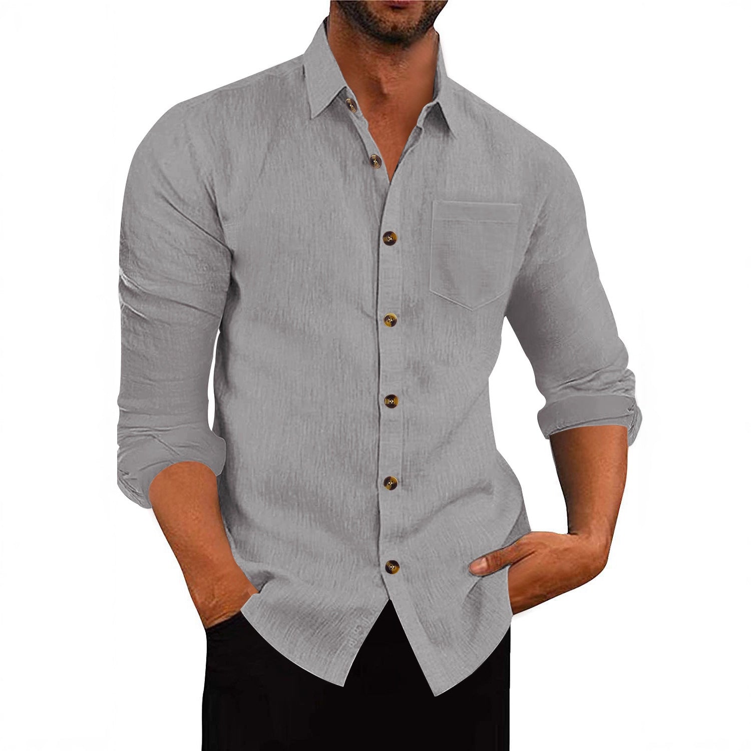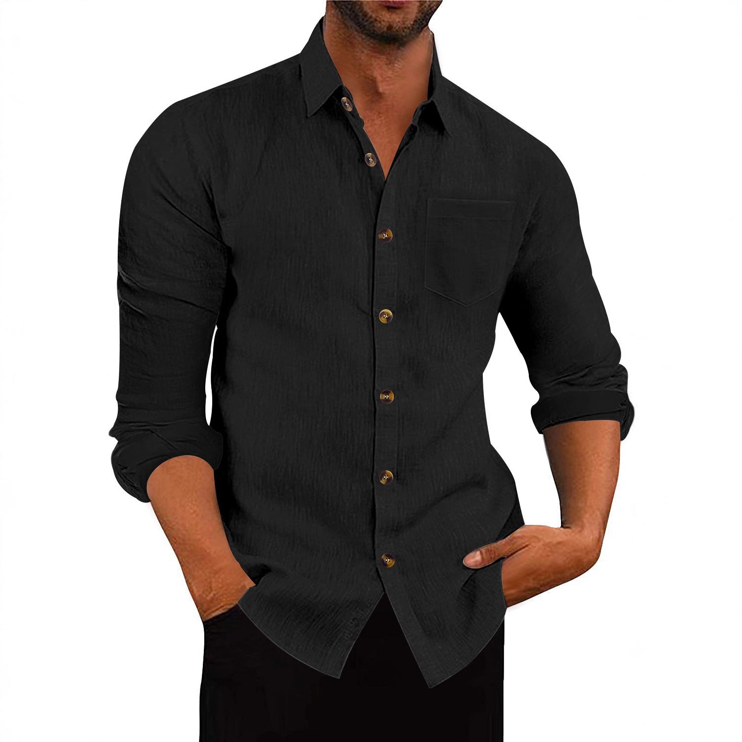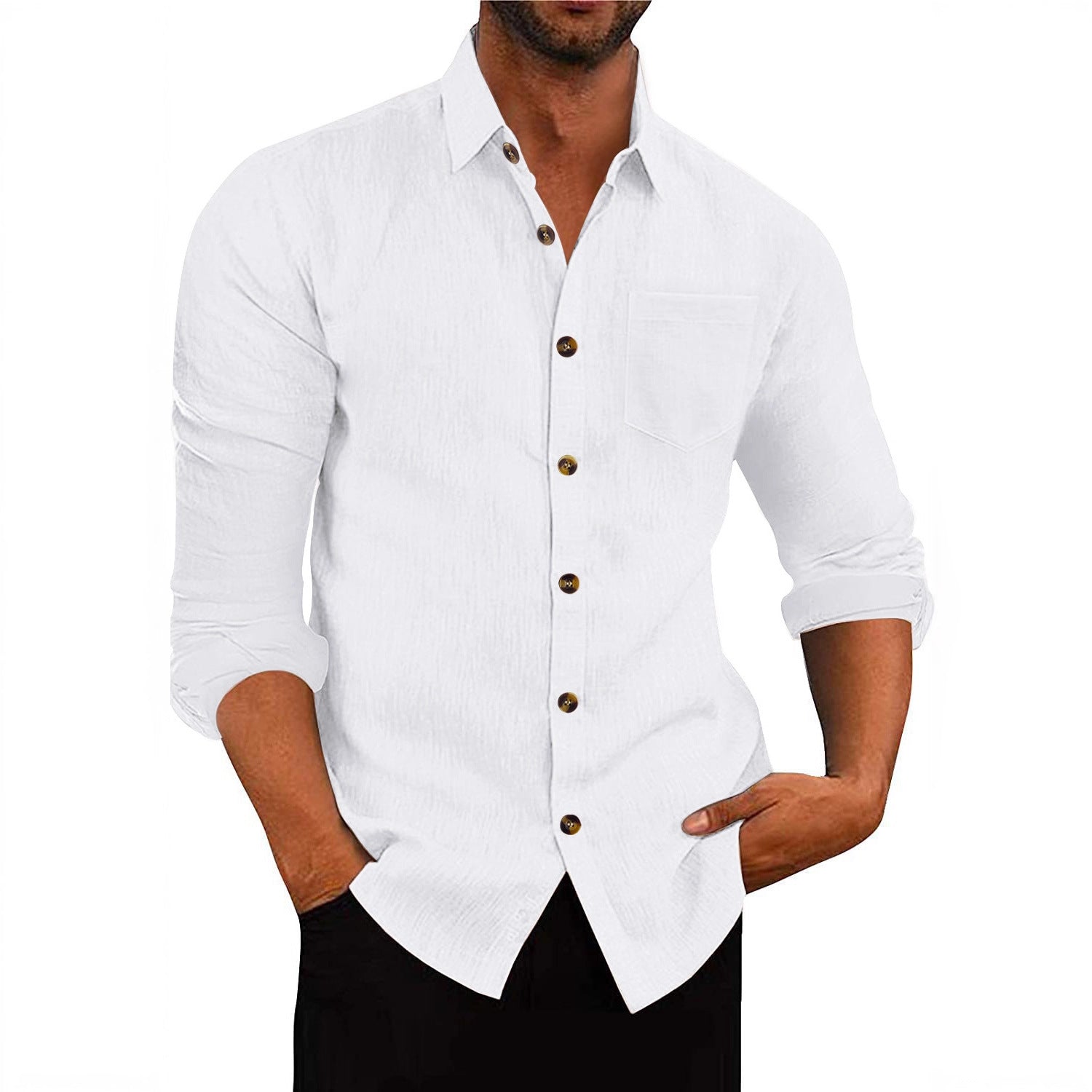 Herren elegantes Langarmhemd aus strukturierter Baumwolle mit praktischer Brusttasche Aliams