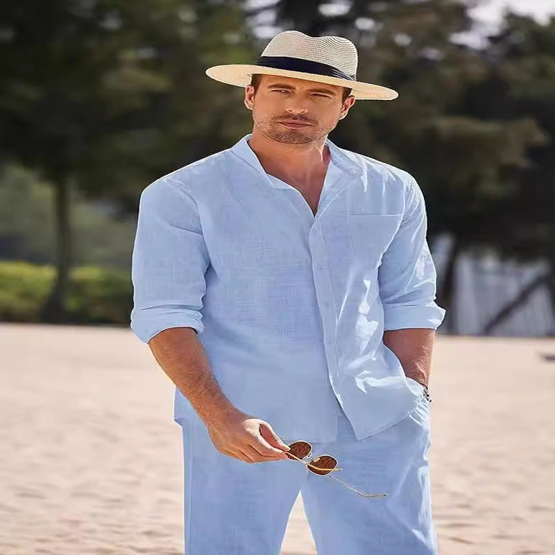 Entdecken Sie das Herren elegante Langarmhemd mit bequemer Hose von Aliams, ideal für stilvolle Anlässe und entspannte Tage. Dieses außergewöhnliche Set kombiniert Komfort und modisches Design und ist damit die perfekte Wahl für den modernen Mann.