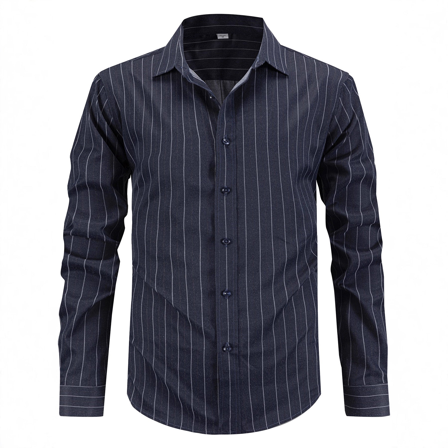 Herren elegantes Langarmhemd mit feinen Streifen Aliams