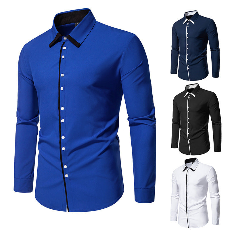 Herren elegantes Langarmhemd mit kontrastierendem Kragen und feinen Knopfdetails Aliams