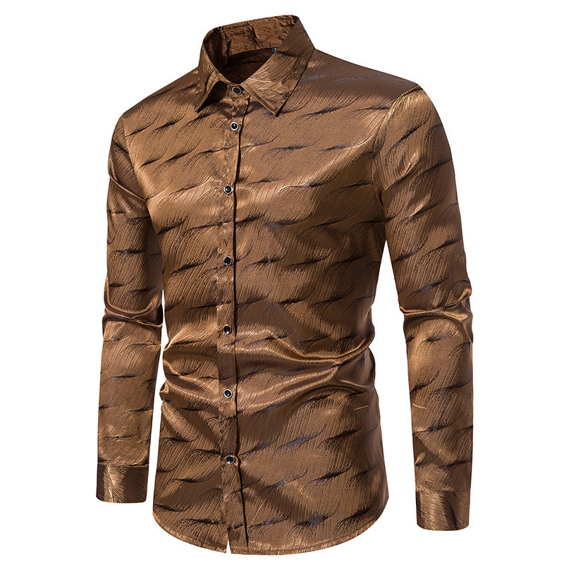 Entdecken Sie das Herren Elegante Langarmhemd mit modernem Wellenmuster, perfekt für jeden stilvollen Anlass. Hergestellt aus hochwertigem und glänzendem Stoff, bietet dieses Hemd nicht nur einen beeindruckenden Look, sondern auch einen hohen Tragekomfort.