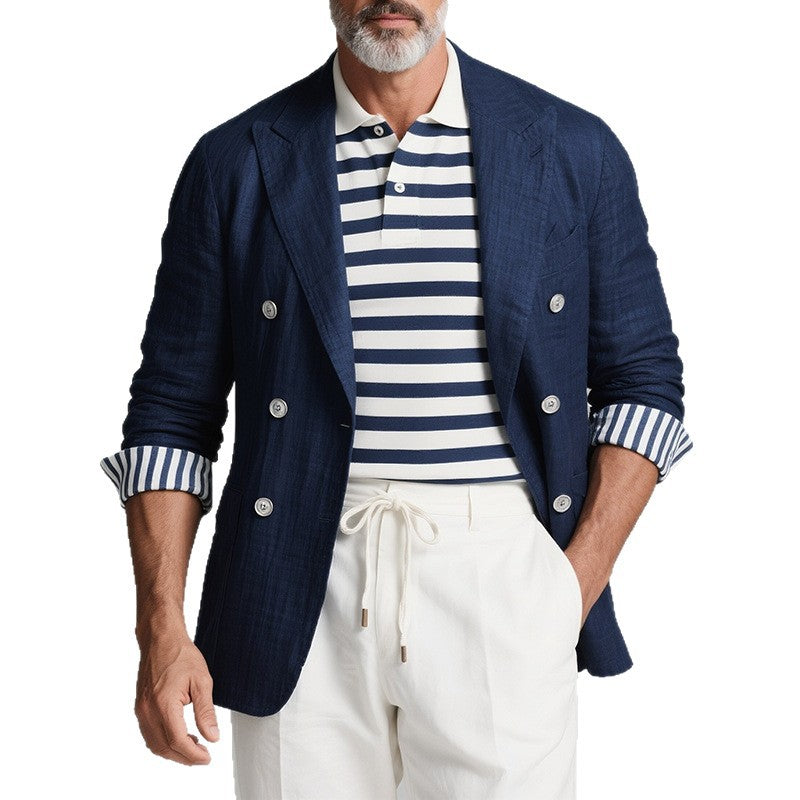 Herren elegantes Leinenblazer mit doppelter Knopfleiste und strukturierten Ärmeln Aliams