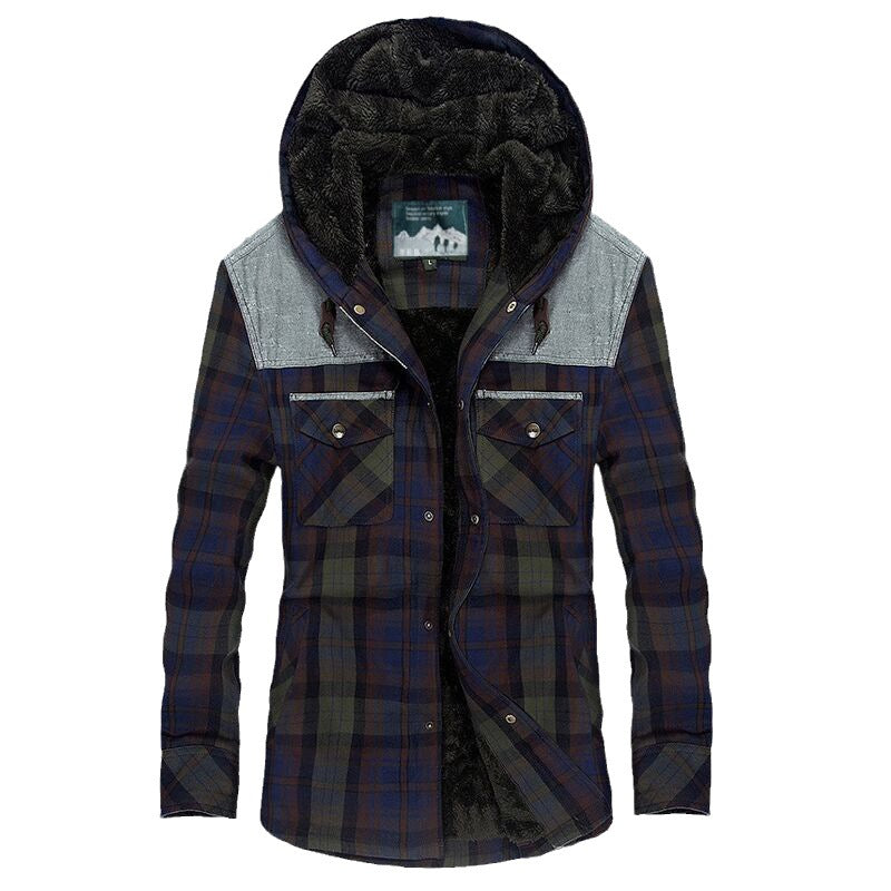 Herren Flanelljacke mit wärmendem Fleece-Futter und Kapuze Aliams