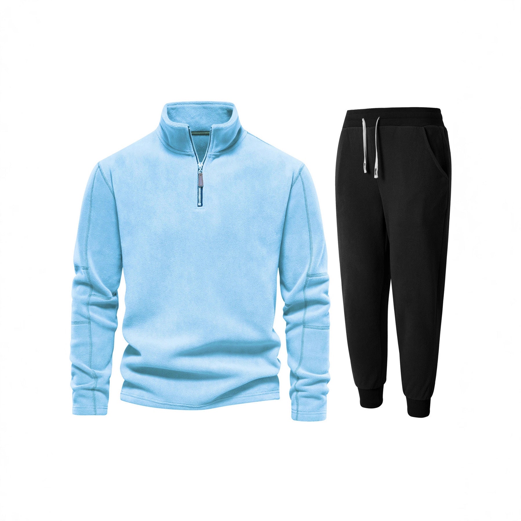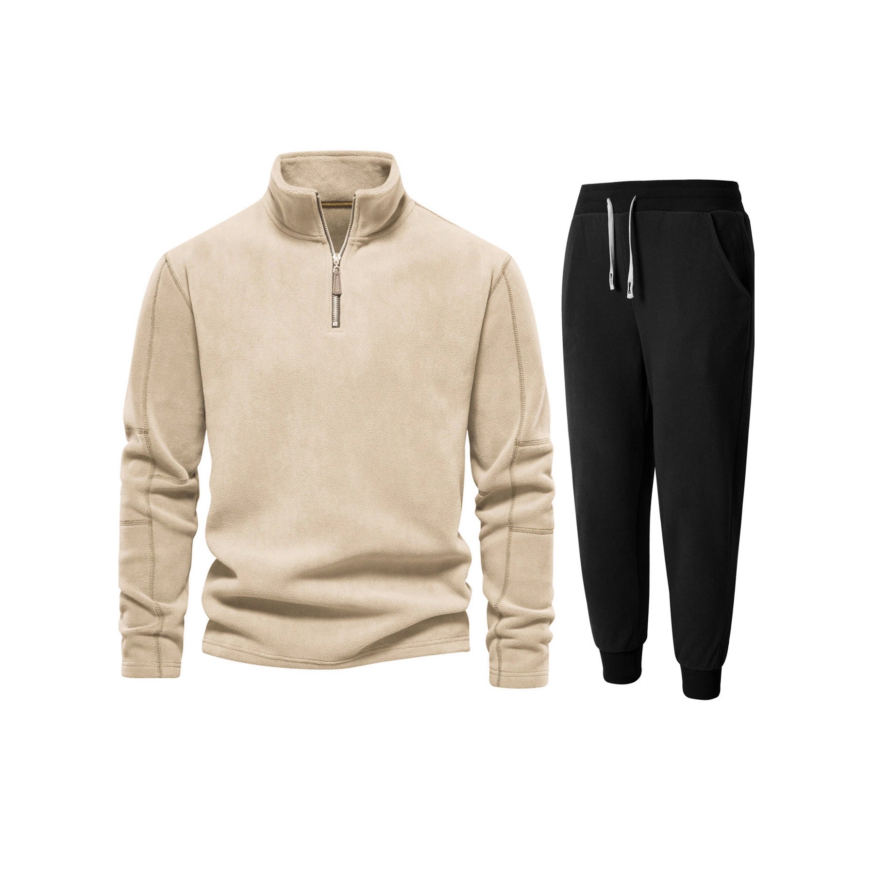 Herren Fleece-Oberteil mit kurzer Reißverschluss und bequemen Jogginghosen Aliams