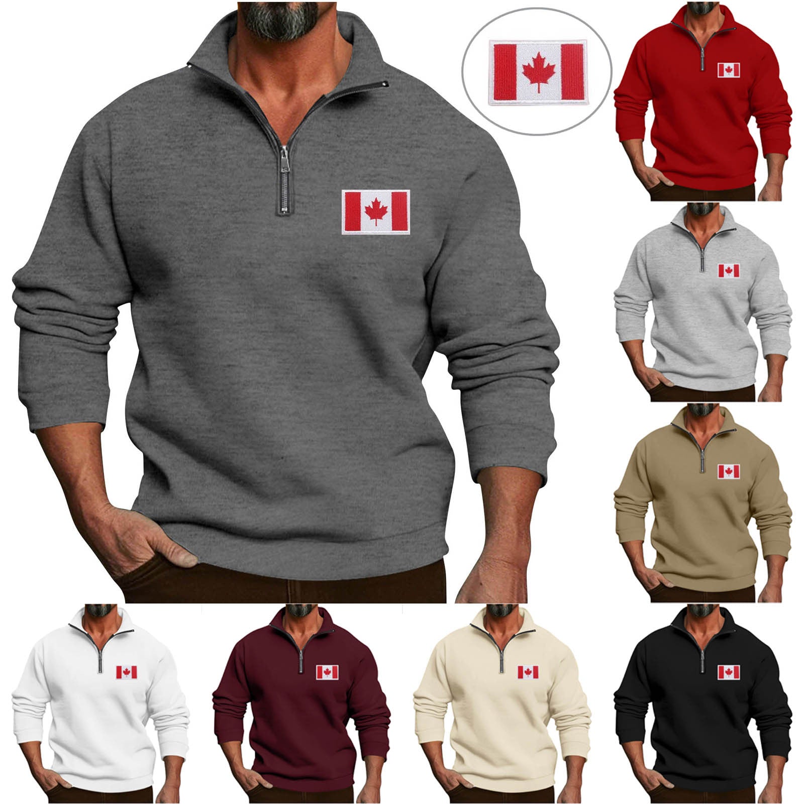 Der praktische Reißverschluss ermöglicht eine individuelle Regulierung der Wärme und macht das An- und Ausziehen zum Kinderspiel. Mit einem eleganten und modernen Design, das durch das auffällige Kanada-Flaggen-Motiv auf der Brust ergänzt wird, eignet sich dieser Pullover ideal für Freizeitaktivitäten sowie entspannte Abende zu Hause.