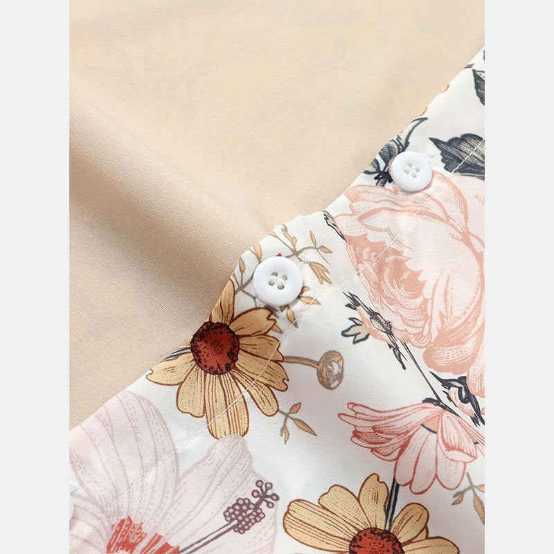 - Design: Das Hemd verfügt über einen floralen Musterprint auf einer Seite und eine schlichte, elegante Seite auf der anderen, was es vielseitig einsetzbar macht.