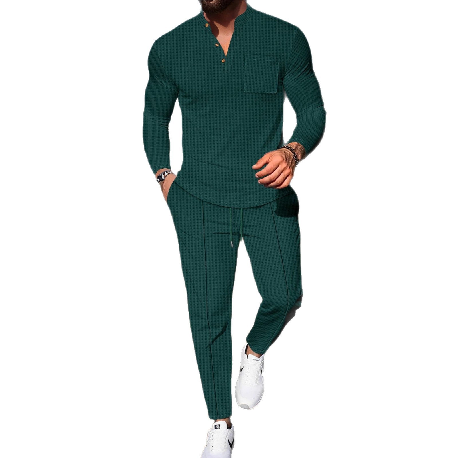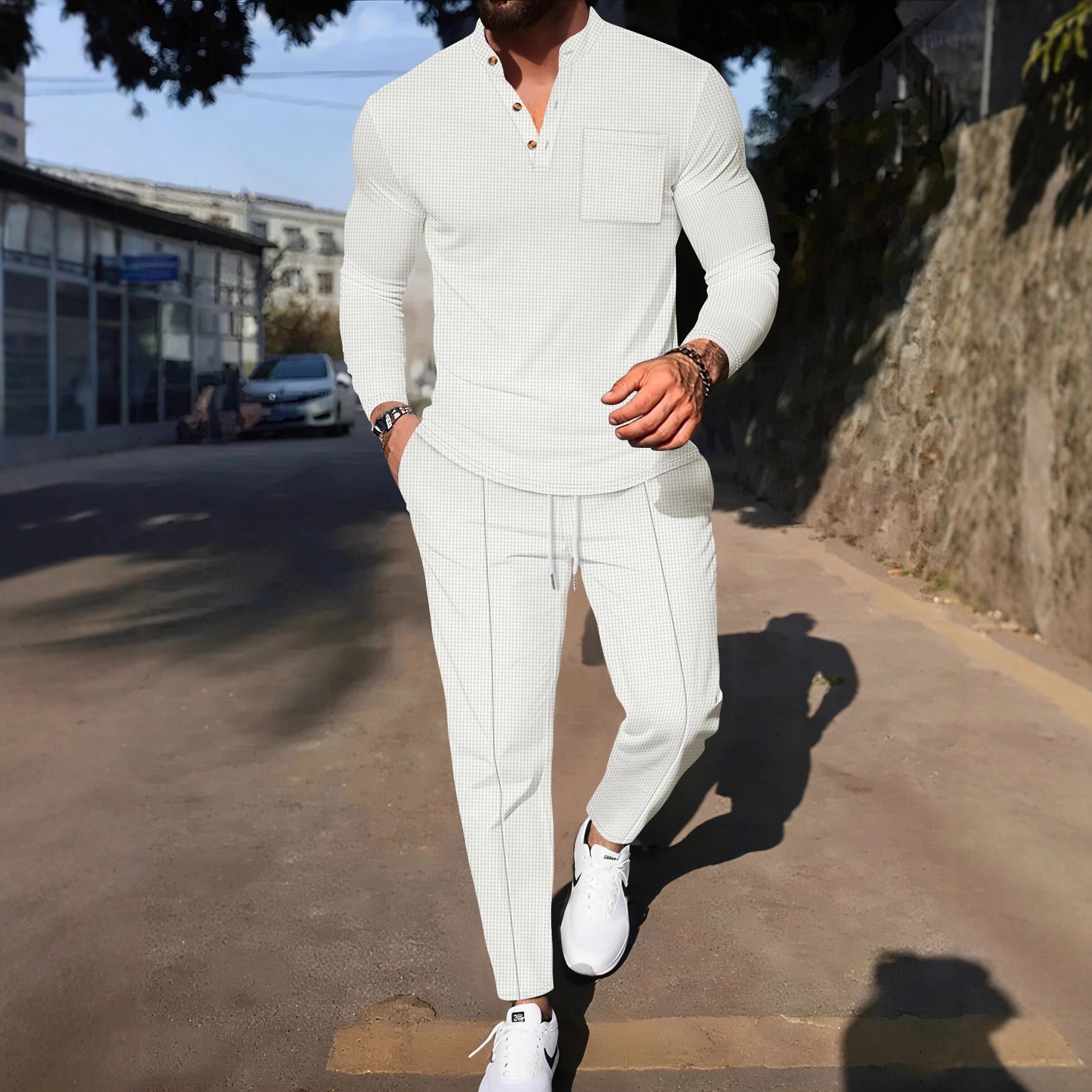 Entdecken Sie den perfekten Mix aus Stil und Komfort mit unserem Herren Freizeitanzug von Aliams. Dieses Set kombiniert ein modisches Langarmhemd mit einem eleganten Stehkragen und einer praktischen Knopfleiste, die sowohl für entspannte Freizeitausflüge als auch für sportliche Aktivitäten ideal ist.