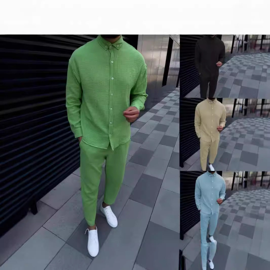 Entdecken Sie den Herren Freizeitanzug von Aliams, der Ihnen optimalen Komfort und stylisches Design bietet. Dieses Set besteht aus einer Hemd-Jacke und passenden Hosen, perfekt für lässige Anlässe oder entspannte Tage in der Stadt.