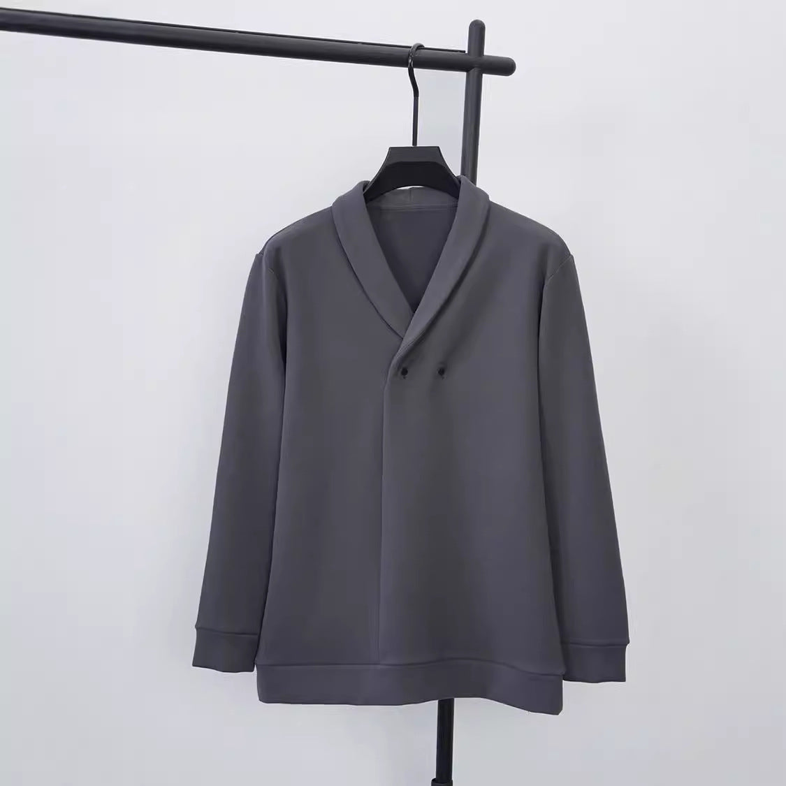 • Design: Moderner Schalkragen mit praktischen Knöpfen für einen einzigartigen Akzent und einfachen Stilwechsel.