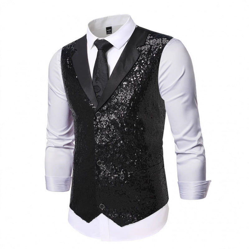 Herren Funkelnde Pailletten-Weste mit Satin-Akzenten Aliams