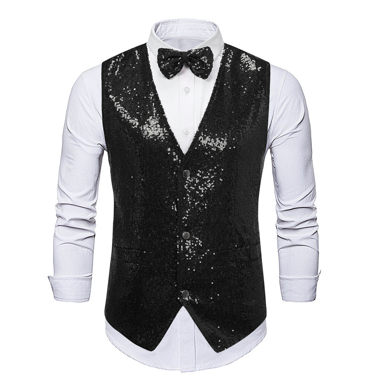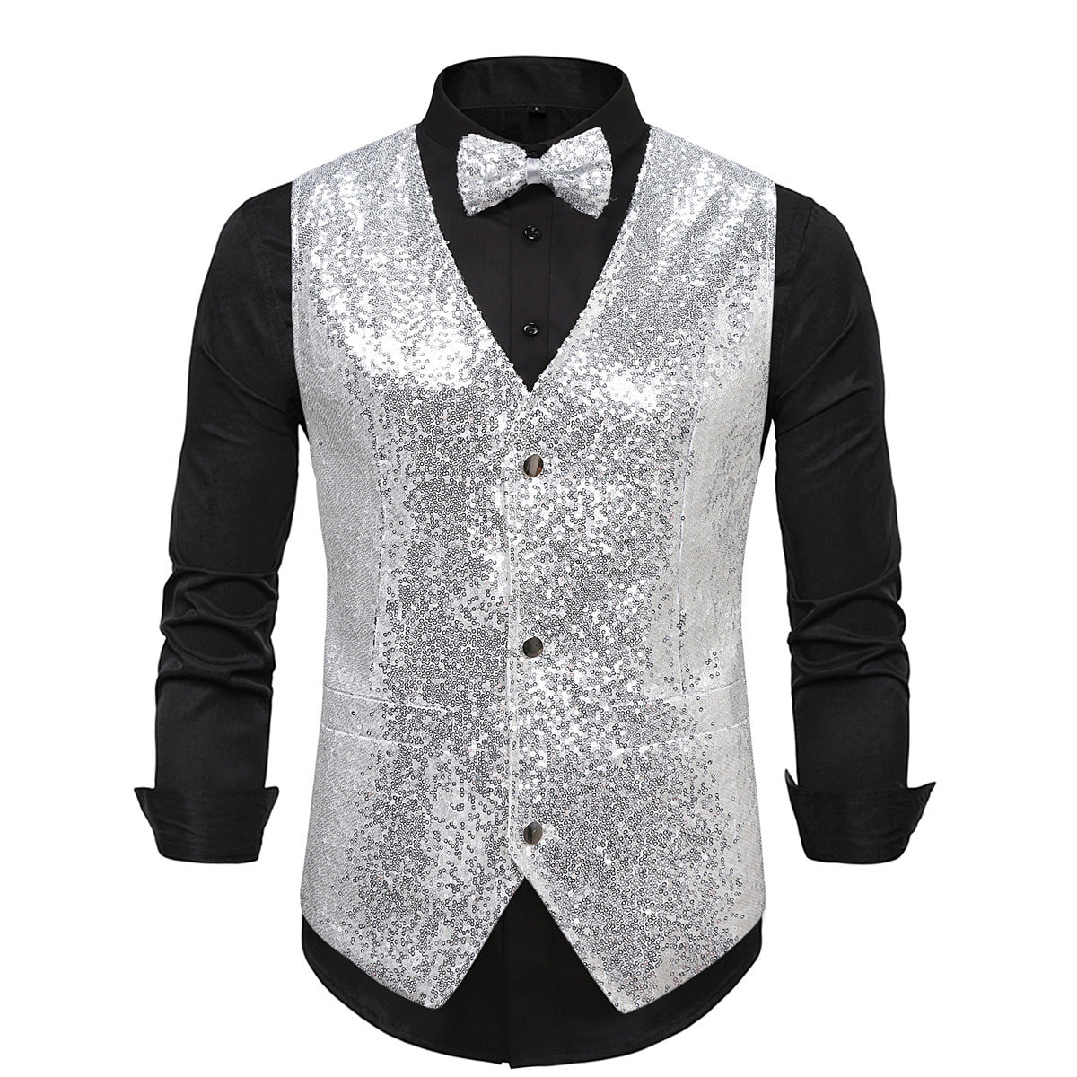 Herren Funkelnder Pailletten-Anzugweste mit passendem Fliegen Aliams