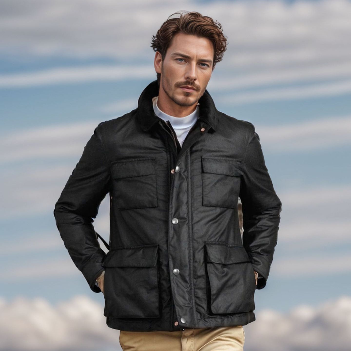 Herren funktionale Utility-Jacke mit warmem Fleece-Kragen und praktischen Taschen Aliams