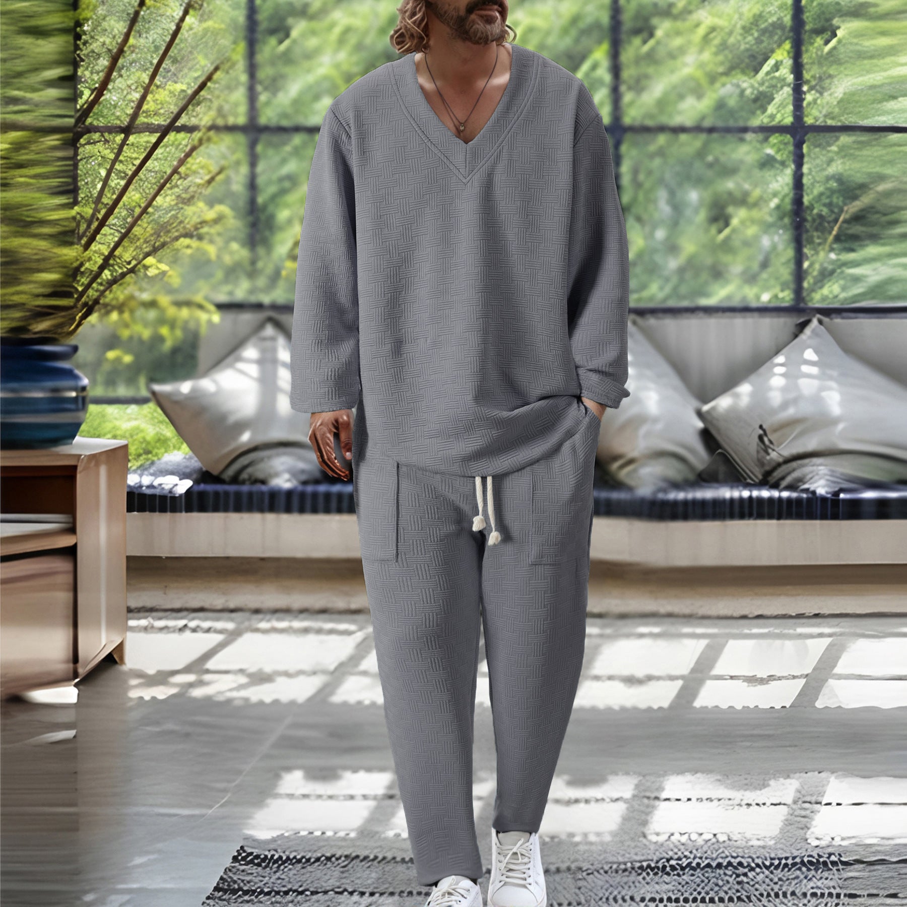 Herren gemütlicher Lounge-Anzug mit V-Ausschnitt Aliams