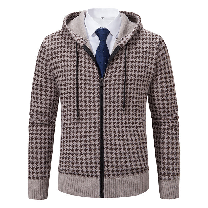 Herren gemütlicher Strickpullover mit modernem Karomuster und Kapuze Aliams