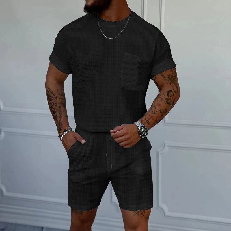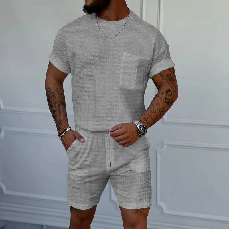 Herren gemütliches Kurzarm-Set mit elastischem Bund und praktischen Taschen Aliams