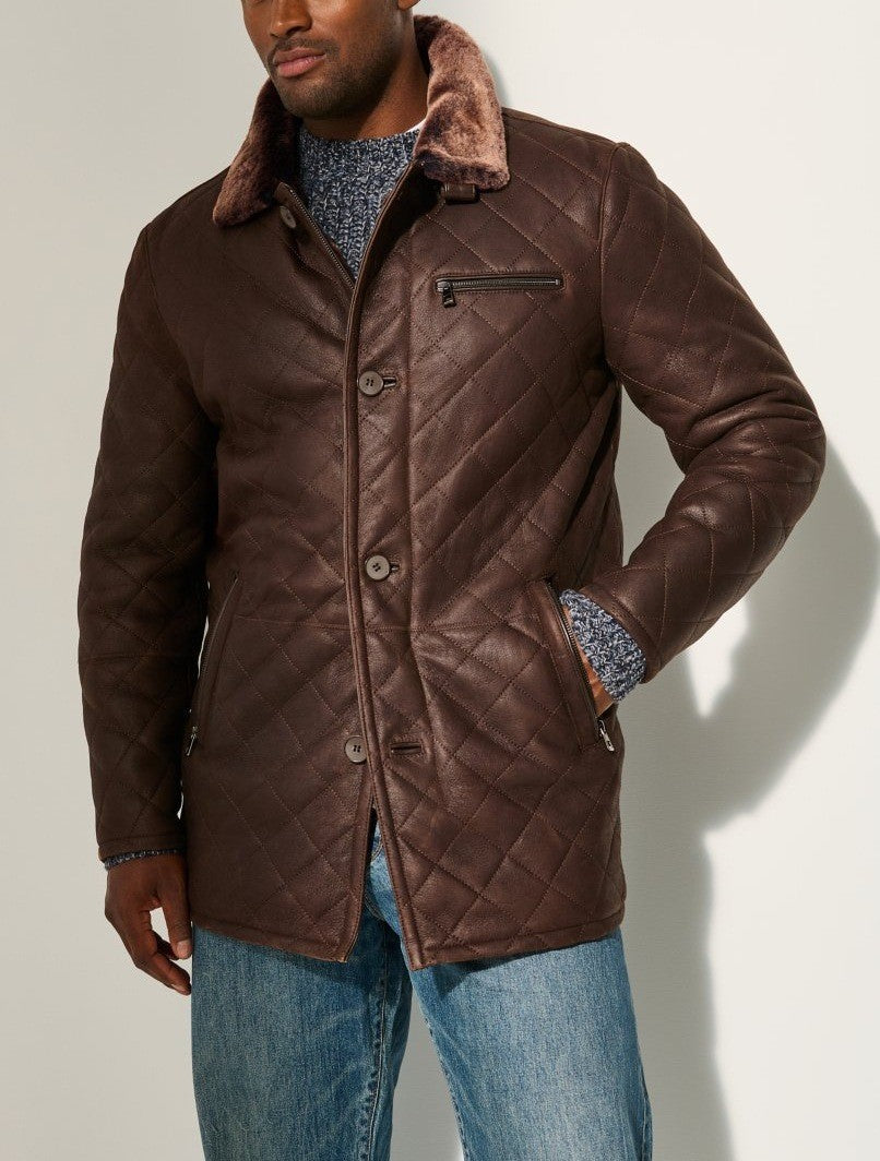 Herren gesteppter Kunstleder-Mantel mit Teddyfell-Kragen Aliams
