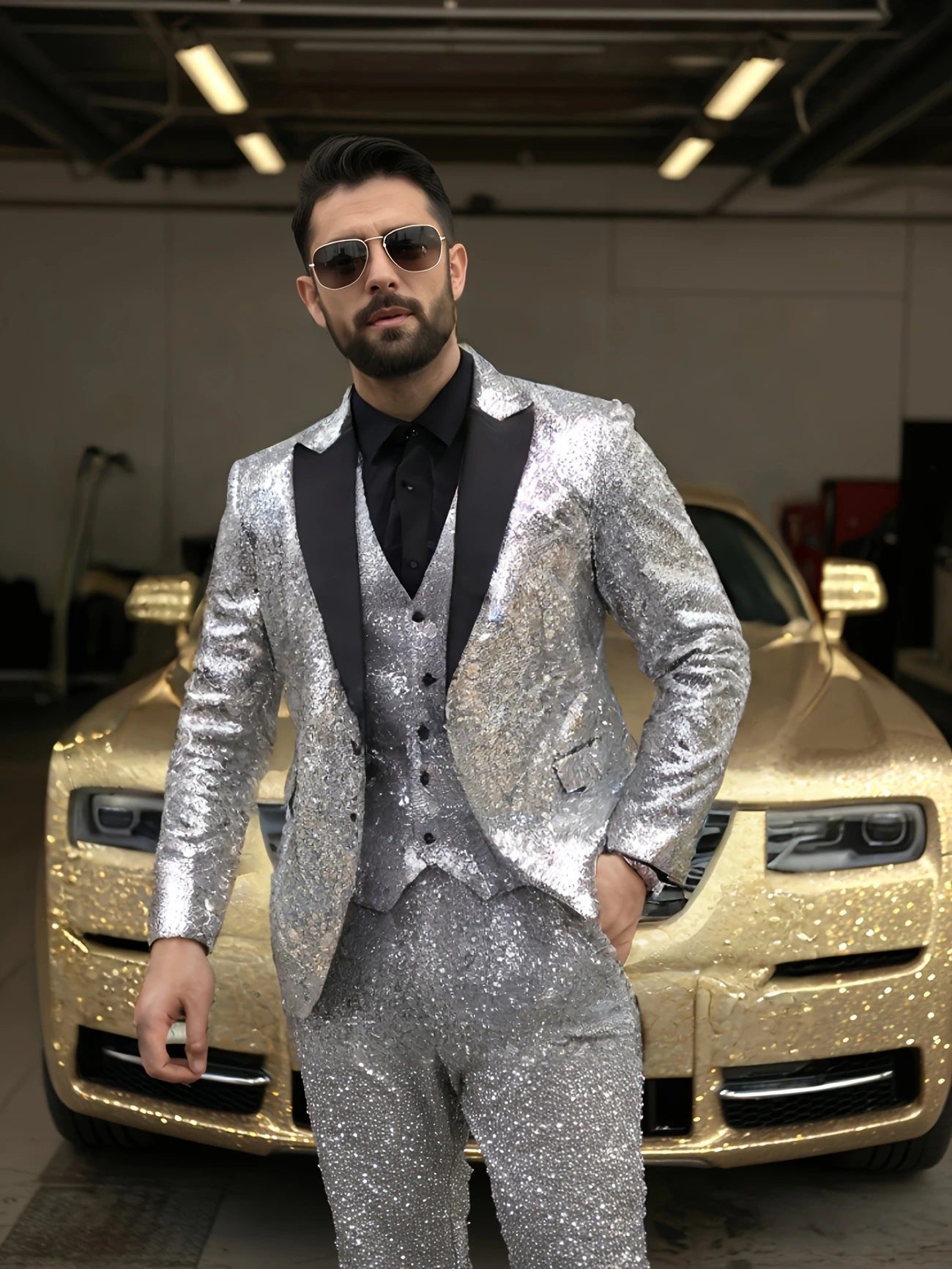 Herren Glamouröser Paillettenanzug mit schmaler Passform und elegantem Revers Aliams